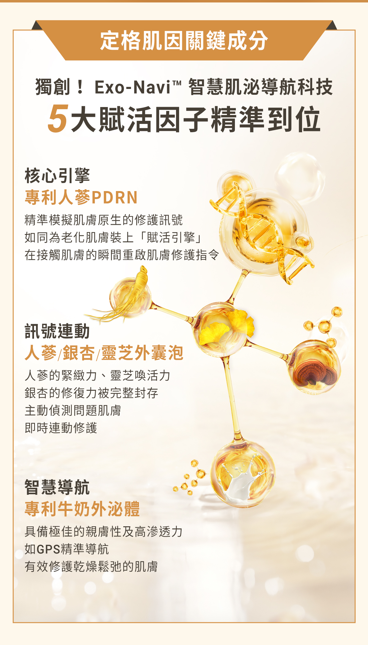 - 人蔘、靈芝、銀杏外囊泡,修復、緊緻、喚活